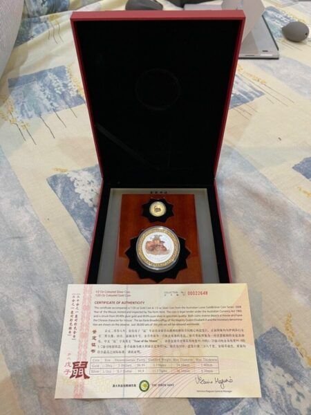 2008 Australia Lunar MOUSE Coloured Gold and Silver Set. With Box and COA