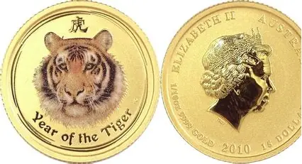 2010 Australia $1 + $15 (Series II) Lunar Year of Tiger Colorized Silver Coin – (1/10oz Gold+1oz Silver Set) With Box and COA