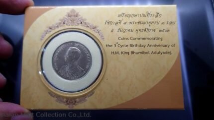 1963 – 1 baht coin commemorating the 3rd cycle of King Rama IX, containing a panel of coins from the Royal
