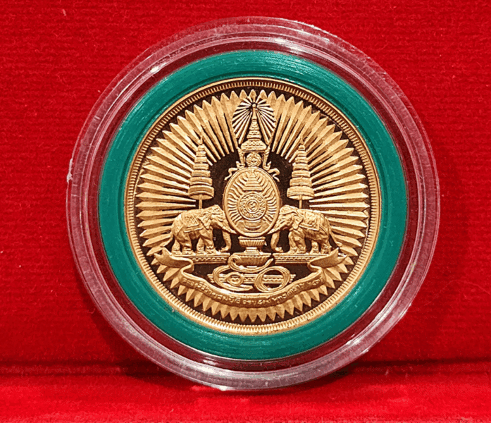 Phra Mahajanaka coin, silver, large print, missing P block, year 1996, with royal book and original box, complete accessories