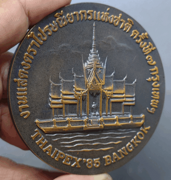 THAIPEX ’85 National Stamp Exhibition Commemorative Coin, Bangkok, 1985, blackened copper, size 7 cm.