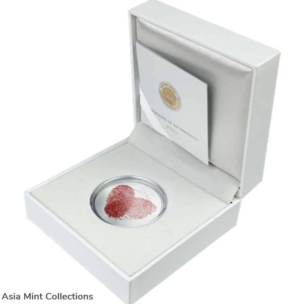 DESCRIPTIONThis coin is a new release from Mint XXI, which has a romantic tone. It reflects the idea in its essence by illustrating the bright red heart, composed of two human fingerprints. The neat design of the coin is incredibly accurate in its symbolism and amazes with a precisely crafted image of a detailed fingerprint pattern – you can literally see each of the tiniest lines. This lovely coin is specially designed for people who fall in love. If you want to make any day special for your sweetheart or to confess your feelings in an original way, this coin is what you really need. Struck in crystal-clear silver – a symbol of faithfulness and sincerity of intentions – the “Love” coin will be a perfect gift for your beloved person for St. Valentine’s Day, wedding anniversary, or birthday! The reverse of the coin features a marvellous red heart, composed of two human fingerprints. On the reverse, the inscription: “LOVE” – the name of the coin. The obverse of the coin features the effigy of Her Majesty Queen Elizabeth II and the inscriptions: “ELIZABETH II” – the name of the Queen, “REPUBLIC OF GHANA”