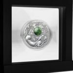 Some poets of the Han dynasty often called the lunar rabbit, a “jade rabbit”, that is why the coin is decorated with a jade inset. The legend of the Moon Rabbit permeates art and culture through time.