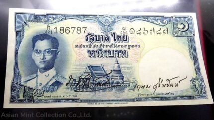 1955 – Thai Banknote, 1 Baht (4th Series Type 9), the King Rama 9, Nam Phan watermark, unused