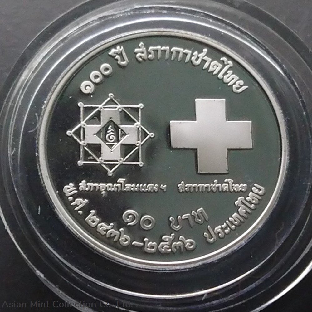 Polished nickel coin, 10 baht, commemorative 100 years, Thai Red Cross, 1993