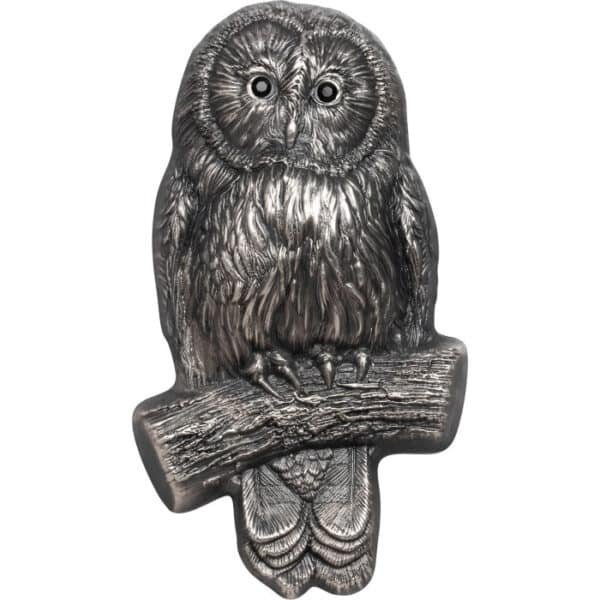 2019 – URAL OWL 3D shaped Swarowski Eyes 2 oz Silver Coin Mongolia