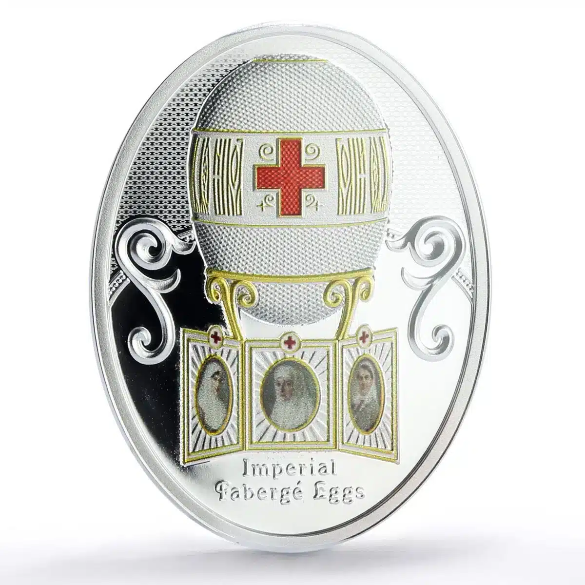 2021 – RED CROSS WITH IMPERIAL PORTRAITS EGG Faberge Silver Coin 1$ Niue