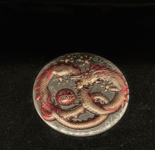 2020 Tuvalu Dragon Rimless 2 oz Silver Coin Antiqued NICE!!