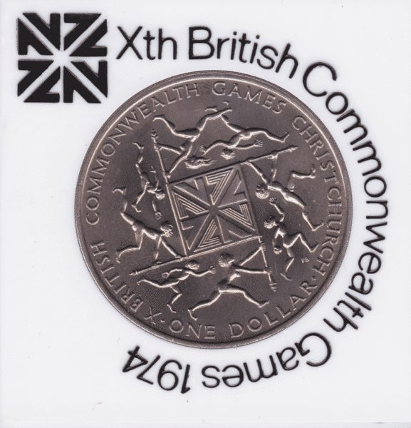 1974 New Zealand One Dollar Xth British Commonwealth Games Commemorative Coin