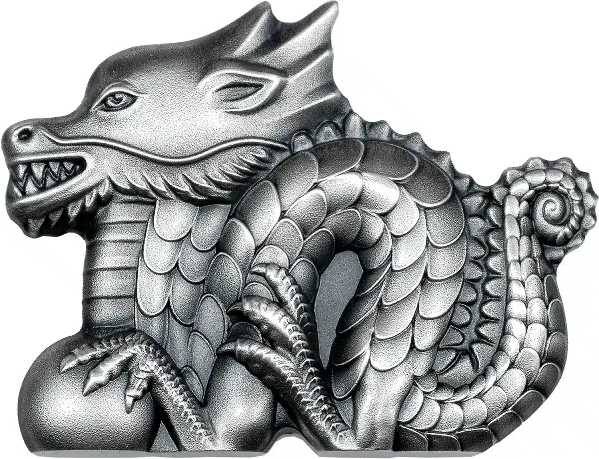 2024 Mongolia Lunar Great Silver Dragon 1oz Silver Antiqued Coin