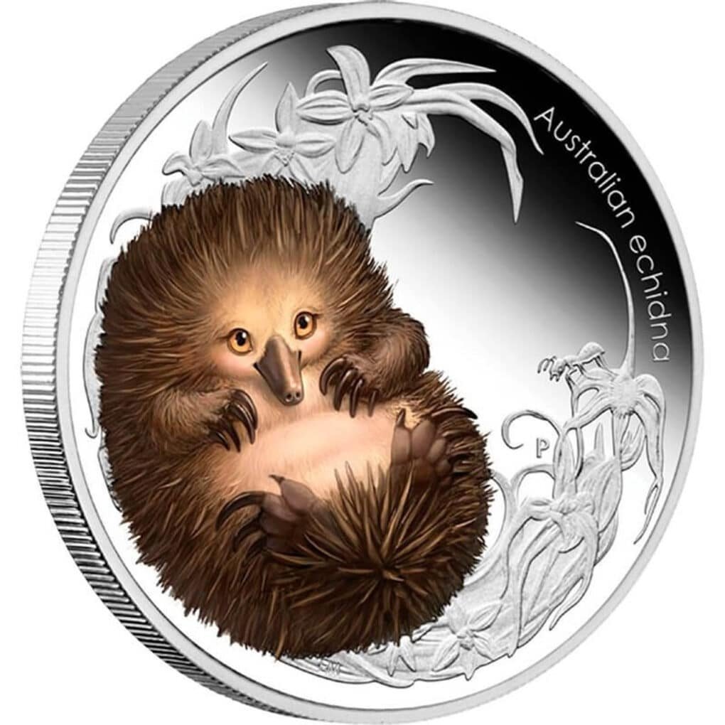 2013 50c Australian Bush Babies II Echidna 1/2oz Silver Coloured Proof Coin