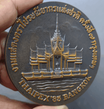 THAIPEX ’85 National Stamp Exhibition Commemorative Coin, Bangkok, 1985, blackened copper, size 7 cm.