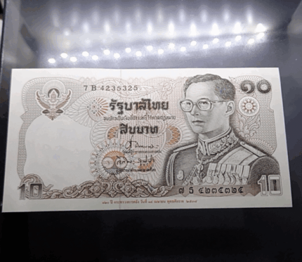 10 Baht banknote, Series 12 (Horse design), 120th Anniversary of the Ministry of Finance, uncirculated.