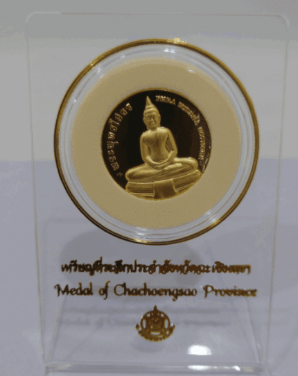 Provincial commemorative coin of Chachoengsao Province, complete with presentation case and acrylic stand. Produced by the Valuable Assets Promotion and Development Division, Department of Treasury.