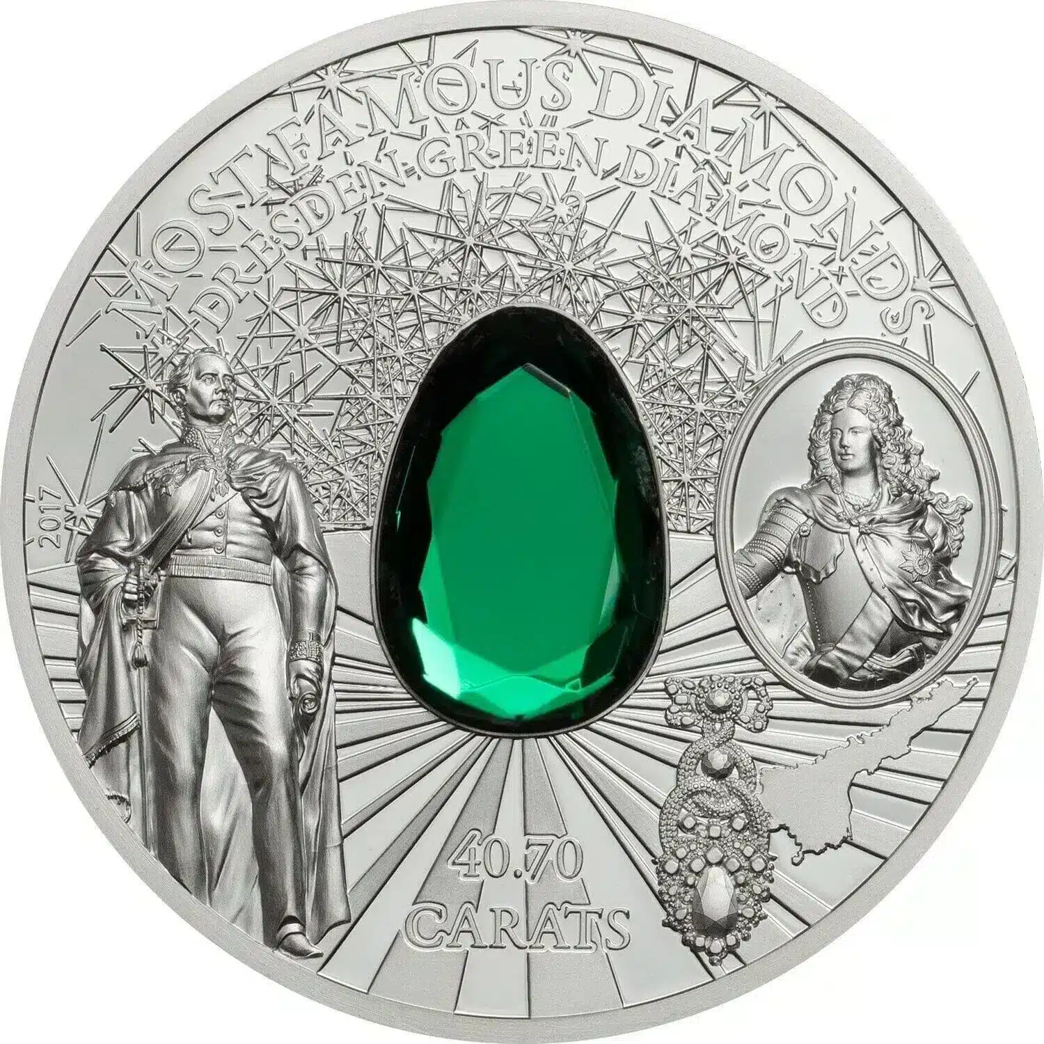 2017 $10 Dresden Green Diamond Most Famous Diamonds 2oz Silver Coin