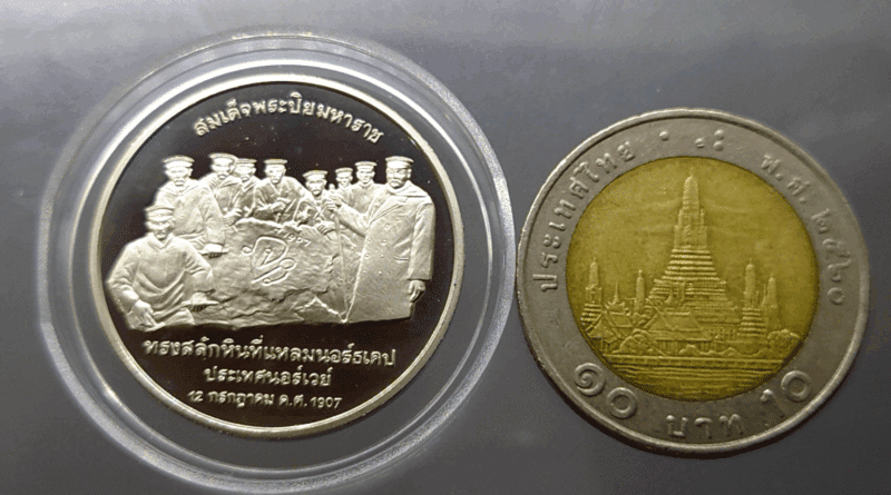 Commemorative polished coin of King Rama V, carved in stone at North Cape, Norway (single-sided) 1907-2007