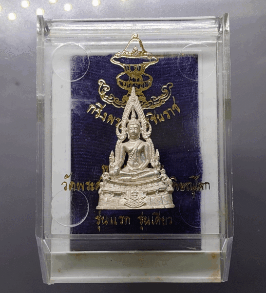 Phra Buddha Chinnarat bell, Mala Biang model, first and only model, silver, large print, Phra Sri Rattana Mahathat Temple, year 1977, popular, rare, with original case.