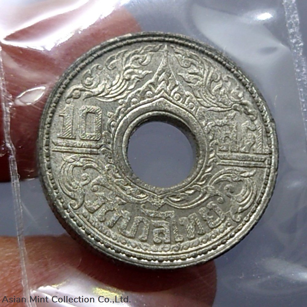 1945 – Thailand 10 Satang Tin Coin – Bua Kanok Khaeng Singh Pattern, unused, old stock