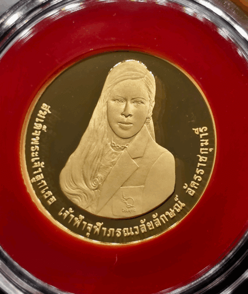 16000 Baht Shiny Gold Coin (Weight 15 grams) commemorating the 50th Birthday Anniversary of Princess Chulabhorn, 2017, with box and certificate.