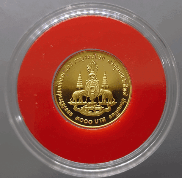 3000 baht gold coin (weight 7.5 grams) commemorating the Golden Jubilee of King Rama IX, 1996