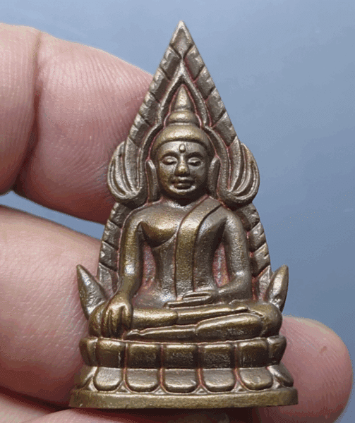 “Phra Pairi Pinat” Buddha statue, 5 inches wide, bronze, blackened, commemorative of the 72nd birthday of King Rama IX, Wat Bowonniwet Vihara, year 1999.