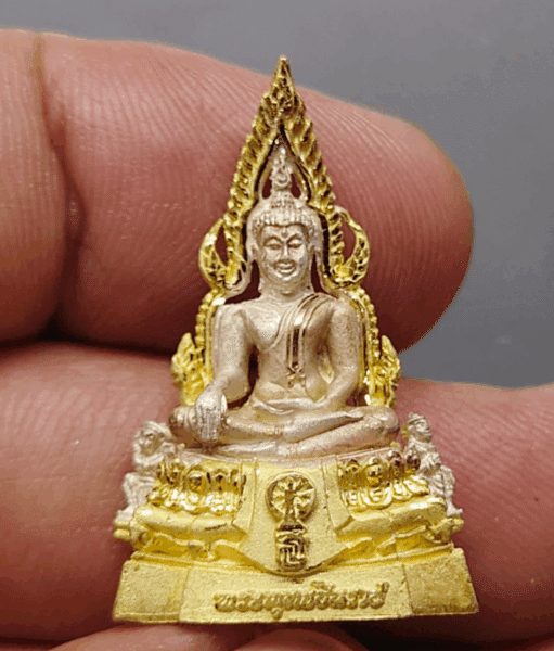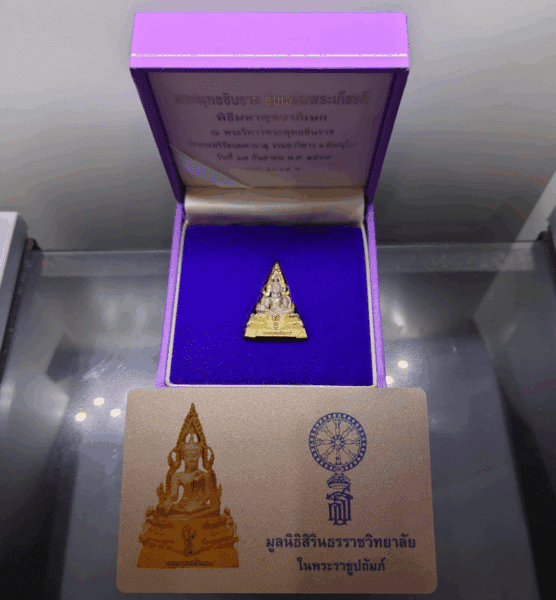 Phra Phuttha Chinnarat amulet, 99.99% pure silver, three-metal alloy, commemorative edition, created by the Sirindhorn Rajavittaya Foundation, consecrated at the Phra Phuttha Chinnarat Grand Temple, Phitsanulok Province, 1996. Comes with original box and certificate.