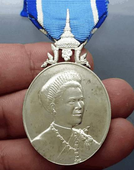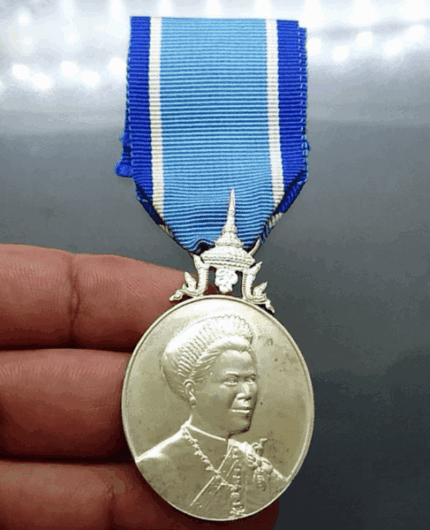 A commemorative medal decorated with a ribbon, celebrating the 60th birthday anniversary of Her Majesty Queen Sirikit, 2004, “Male Model”