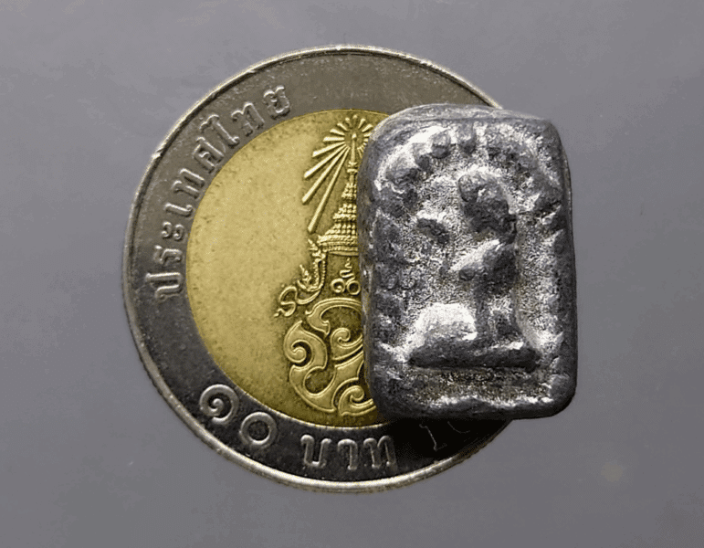 ***The Buddha statue may not be exactly as shown in the picture, but the condition and model are the same. Guaranteed authentic worldwide*** Wat Konon, in Phasi Charoen District, Thonburi, was formerly the residence of Luang Pu Iam of Wat Nang and his teacher, Luang Pu Rod. The monks created lead alloy Phra Pidta amulets and enshrined them in a crypt. The crypt was officially opened around 1969. In 1971-1972, Wat Konon underwent a major renovation of the new ordination hall. The abbot then brought Luang Pu Iam’s old lead alloy and fragments of Phra Pidta amulets found in the damaged Wat Konon crypt and invited venerable monks from across the country to participate in the consecration ceremony. (Some sources state that old lead alloy from amulets from crypts across the country was also melted down for this batch of amulets.) The amulets were distributed as souvenirs to devotees at the gilding and setting of the boundary stone for the new ordination hall on April 1, 1972.
