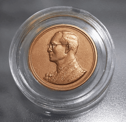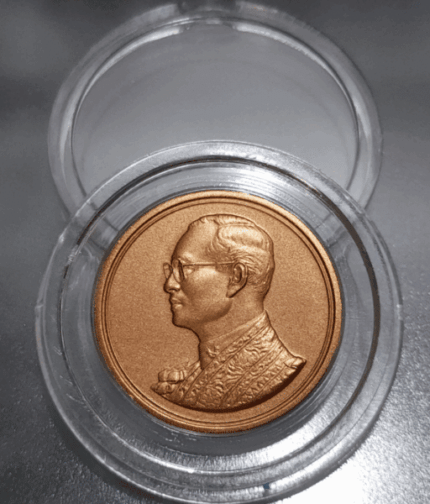 Bronze coin, commemorative coin for the 60th anniversary of His Majesty’s accession to the throne in 2006, with a case from the department.