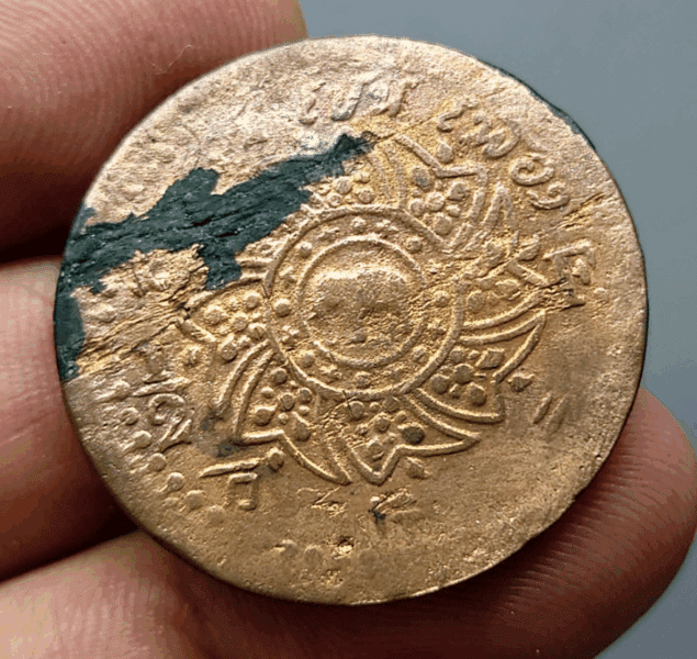 Copper coin with the Royal Crown and Chakra emblem (thin type), King Rama IV, 1866