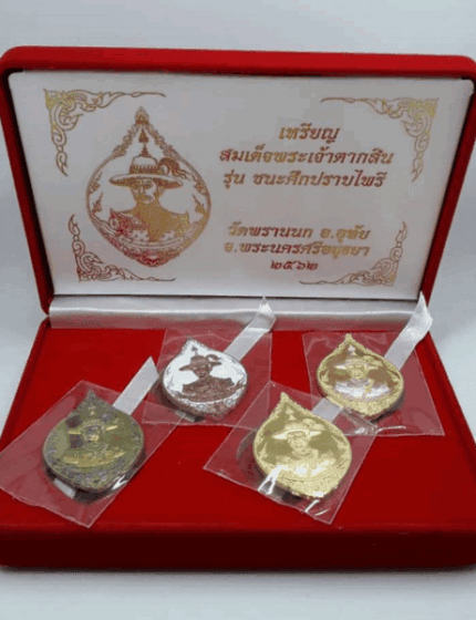 (Set of 4 types of committee coins) King Taksin the Great’s coin, Victory over the enemy model, Phran Nok Temple, Ayutthaya, 2019, with original box