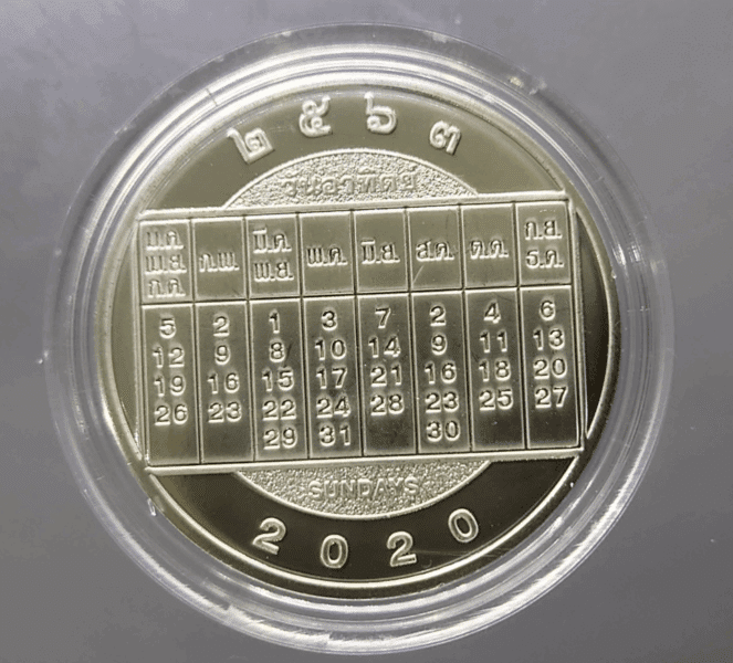 Copper coin with silver plating, Year of the Rat, 2020 (B.E. 2563), minted by the Royal Thai Mint, uncirculated.