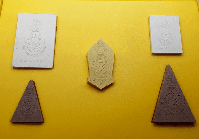 To allow the public to participate with the government in offering royal merit on the occasion, all proceeds were presented to His Majesty the King for charitable purposes at his pleasure. His Majesty graciously bestowed the name of this project as Phra Phuttha Nawammaharaja Yutchabpariwatnamongkol, referring to the Buddha image created on the auspicious occasion of the 60th birthday anniversary of His Majesty the King Bhumibol Adulyadej the Great, which was the 72nd birthday anniversary edition on December 5, 1999. Furthermore, His Majesty graciously bestowed Chitralada materials to create a set of 5 Buddha amulets: two Phra Somdej, two Phra Nang Phaya, and one Buddha image representing the day of birth.