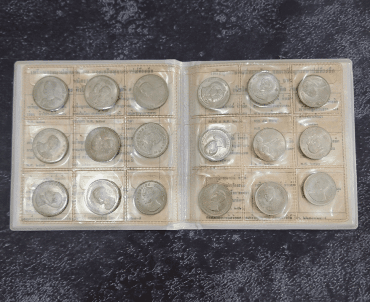 Complete set of 18 1-baht coin albums, leather-bound, from the Royal Thai Mint. Uncirculated (limited production).