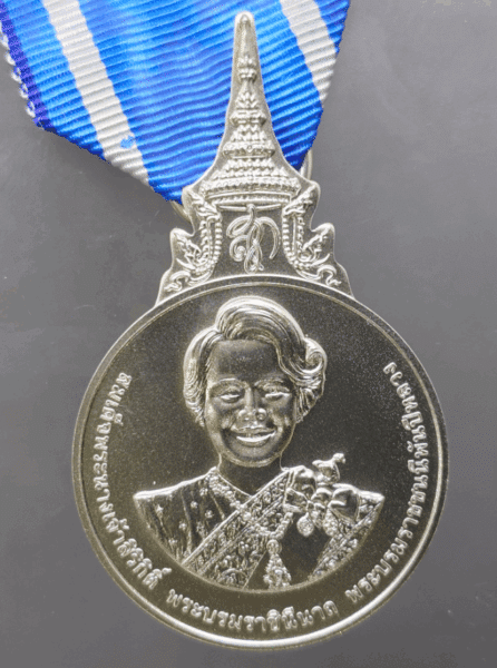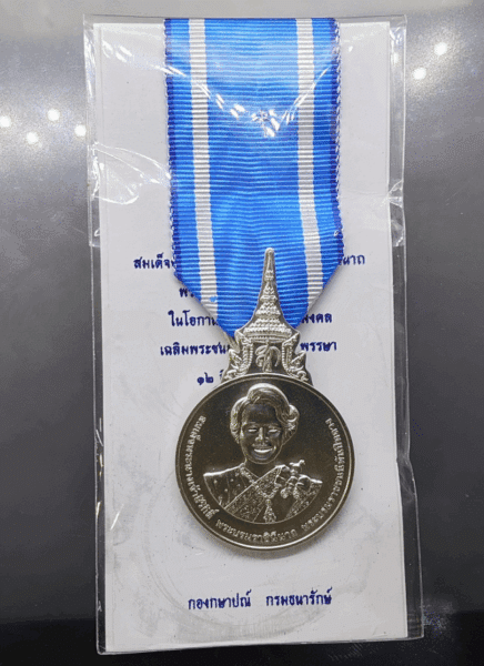 A commemorative medal decorated with a ribbon, in honor of Her Majesty Queen Sirikit the Queen Mother’s 90th birthday, 2022, “Male Model”