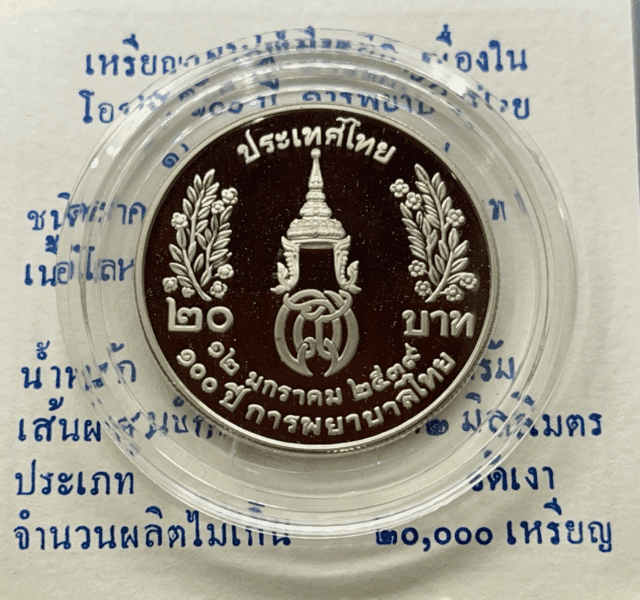 20 baht coin, 100 years of Thai nursing, polished nickel, with certificate