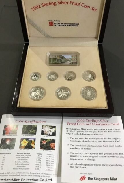 2002 Singapore 🇸🇬 Sterling Silver Proof Coin Set With Original Box And Coa,